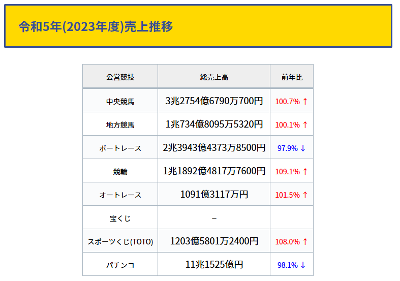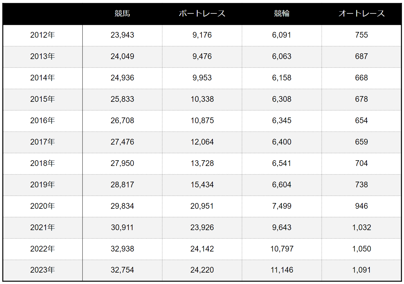 11년간 매출 변화 표. 경정은 9천억엔에서 2조 4천억엔까지 상승