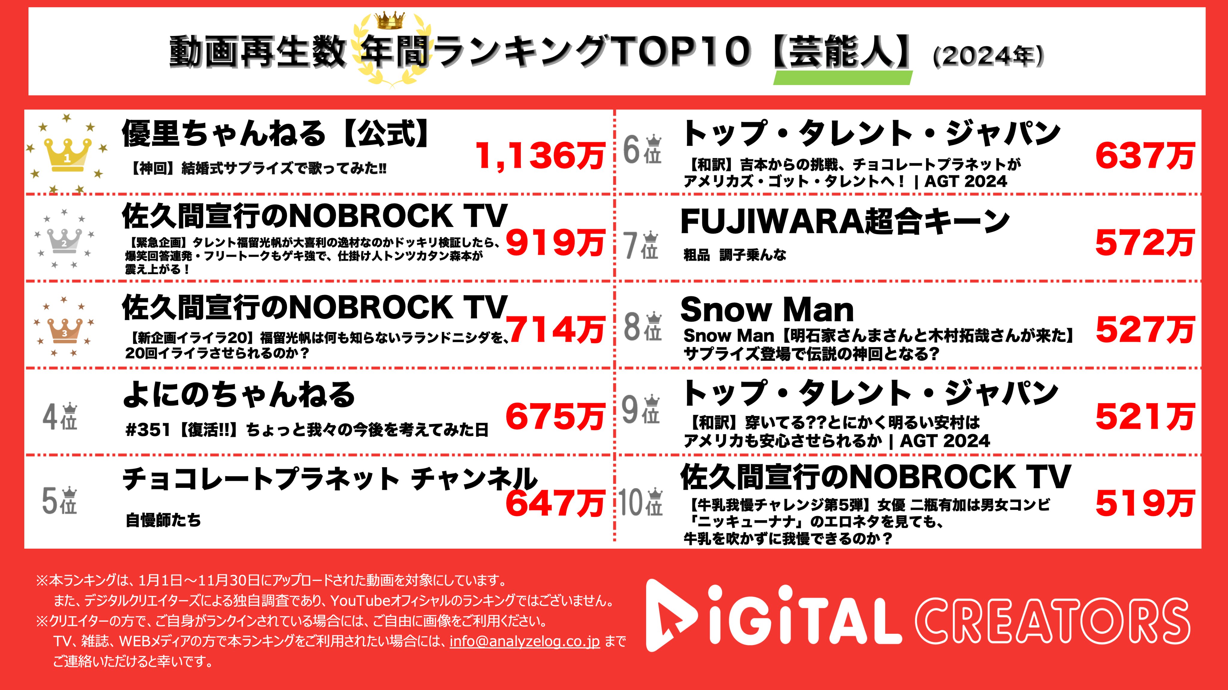 デジタルクリエイターズ 디지털 크리에이터즈가 정리한 2024년 연간 연예인 영상 랭킹