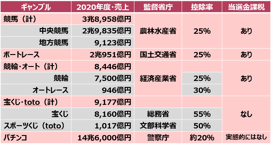 (2021년 발표한 2020년의 각 갬블의 경제 규모)