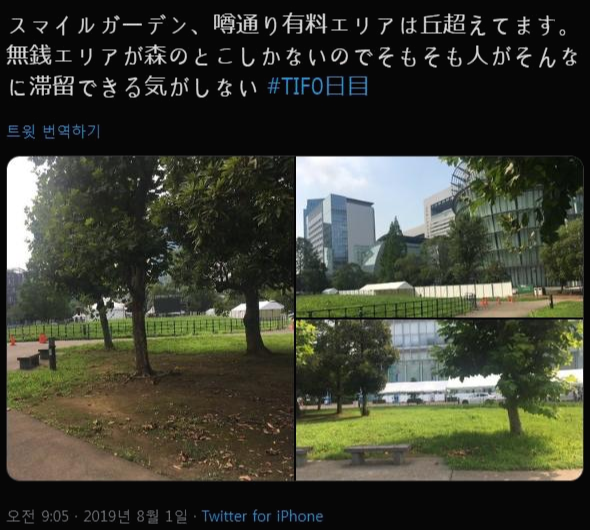 제일 말이 많은 부분은 유료구역의 확대. 기존에 무료로도 멀찌감치서 볼 수 있던 스마일가든을 비롯해 넓게 펼쳐진 무대에서 유료 지역이 더 넓어져서 무료로 볼수 있는 거리가 상당히 멀어졌다.