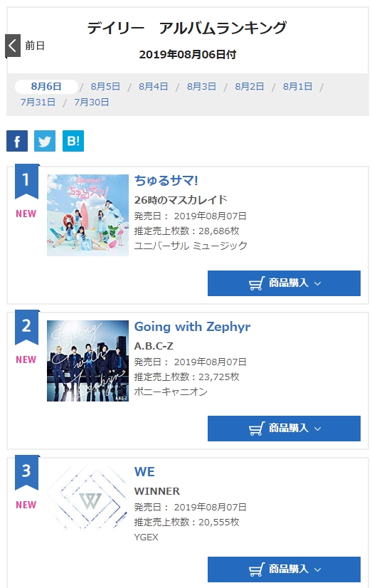 어제자 오리콘 데일리 1위는 니지마스의 미니앨범이 차지했다. 28686장.