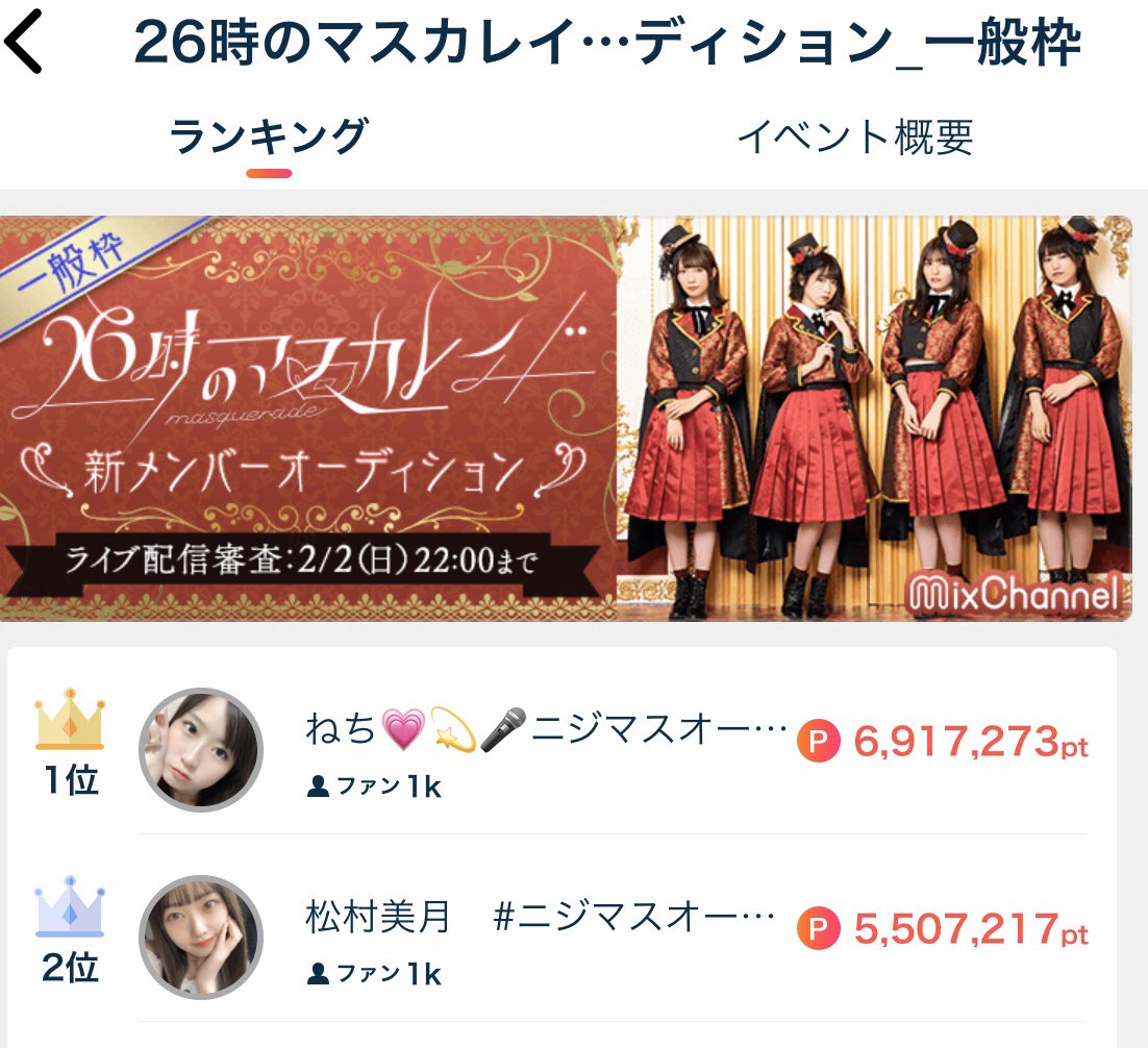믹스채널 라이브를 통해 얼마나 많은 팬들을 투표로 끌어들였는지가 관건이었는데 이미 팬을 확보한 이들에 못지않게 0부터 시작한 멤버들을 지지하는 팬들의 열의가 느껴지는 중이다. 기존 니지마스와 어울리는 멤버, 또는 모자란 부분을 메꿔줄 멤버를 찾는 니지마스 팬들의 투표도 많았기 때문에 마지막까지 결과를 예측하기 힘들것 같다.