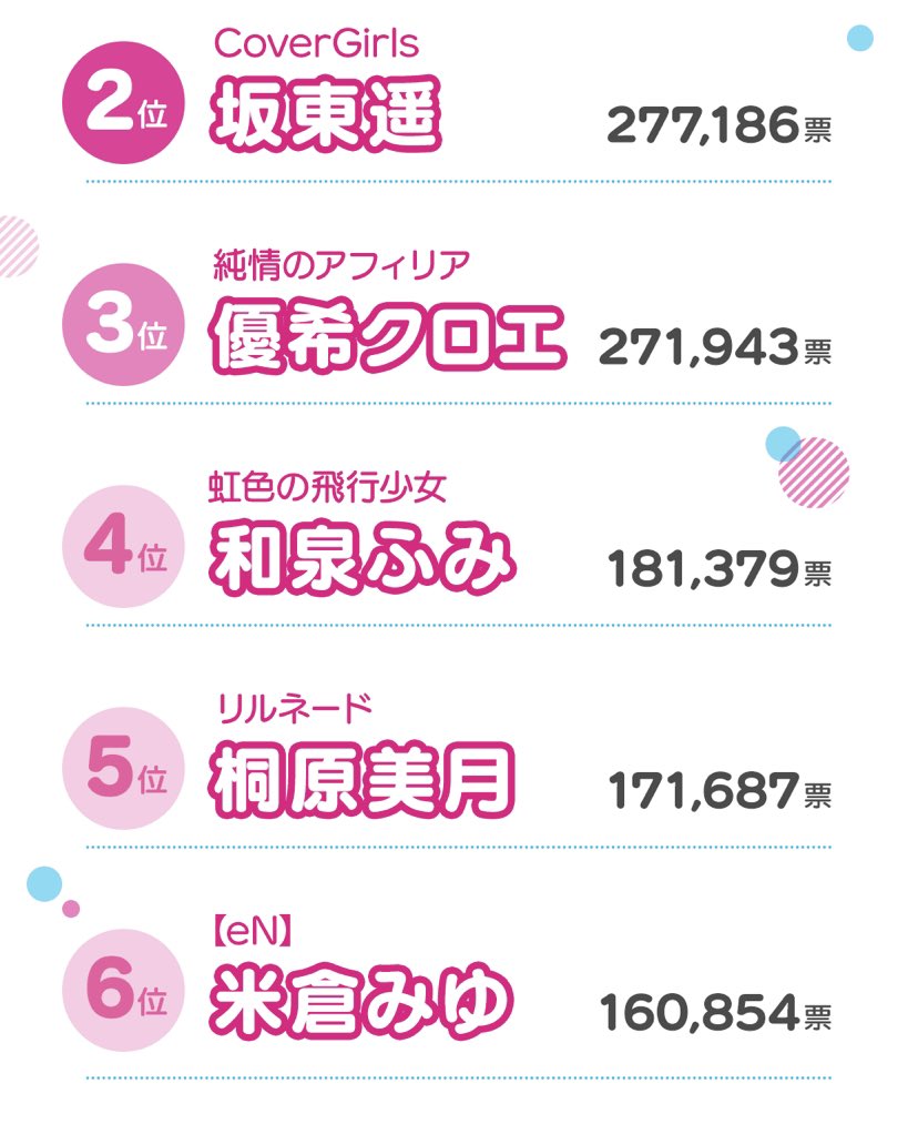 그리고 어제까지 투표에서는 커버걸스의 坂東遥 반도 하루카가 1위