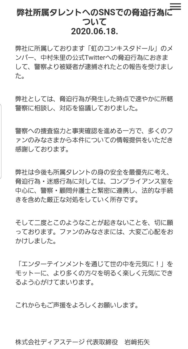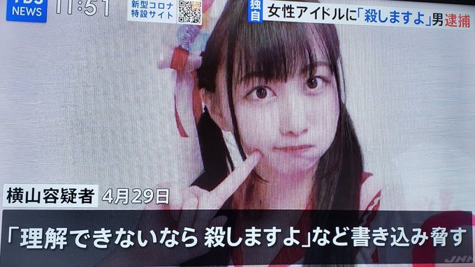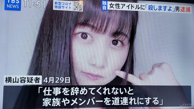 트위터에 답글로 "殺しますよ、これは脅しではなく予告です" 라고 써서 기획사의 업무를 방해한 혐의.