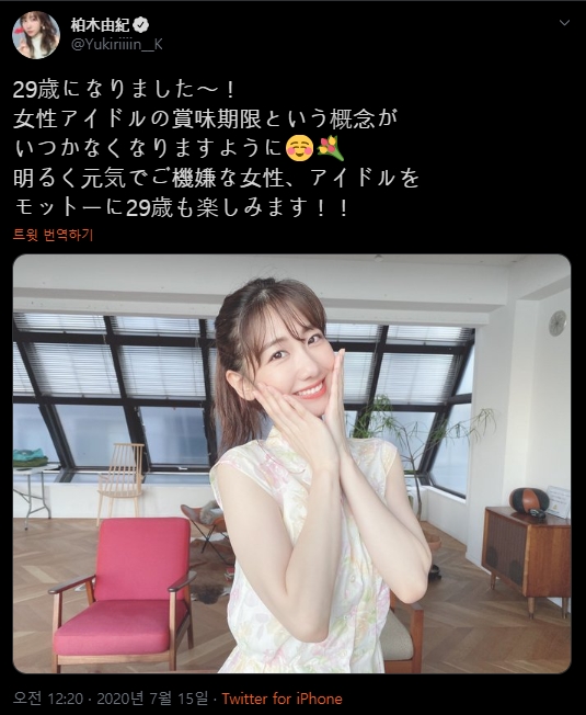 오늘 생일인 AKB48의 카시와기 유키가 글을 올렸다.