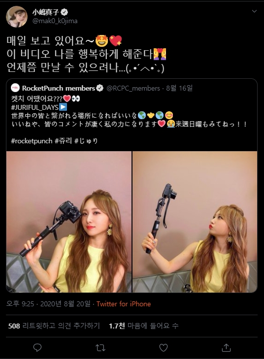 다카하시 쥬리가 로켓펀치 멤버 계정으로 올린 글에 의견추가 리트윗으로 트윗을 올리 코지마 마코.