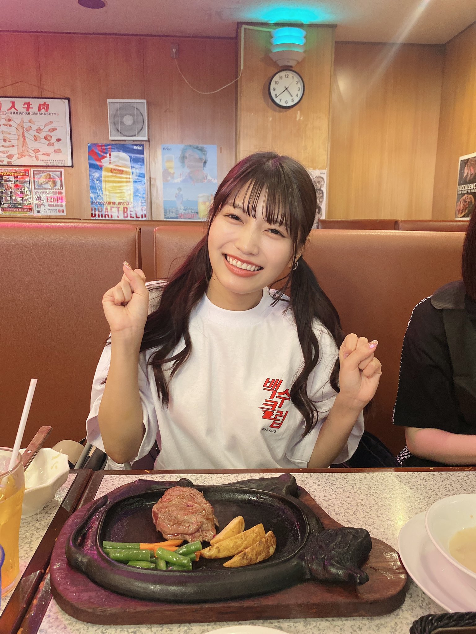 まねきケチャ 마네키케챠의 센터 松下玲緒菜 마츠시타 레오나가 오키나와 공연 후 사진을 올렸다. 한글로 '백수클럽' 이라고 써있는 반팔 티셔츠를 입고 찍었다.