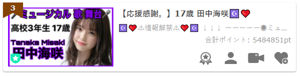 3위는 소속사 없이 활동하는 뮤지컬 배우 田中海咲 다나카 미사키.