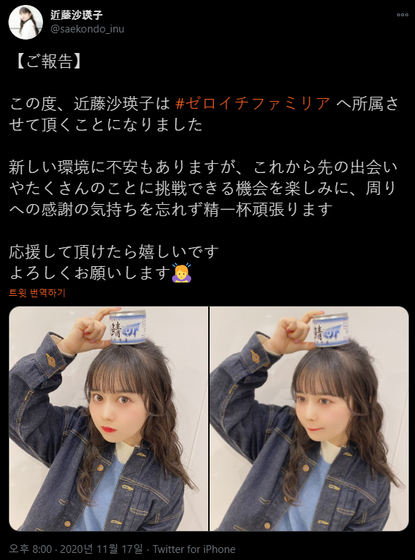 정식으로 오늘부터 제로이치파밀리아에 소속된 近藤沙瑛子 콘도 사에코의 트위터