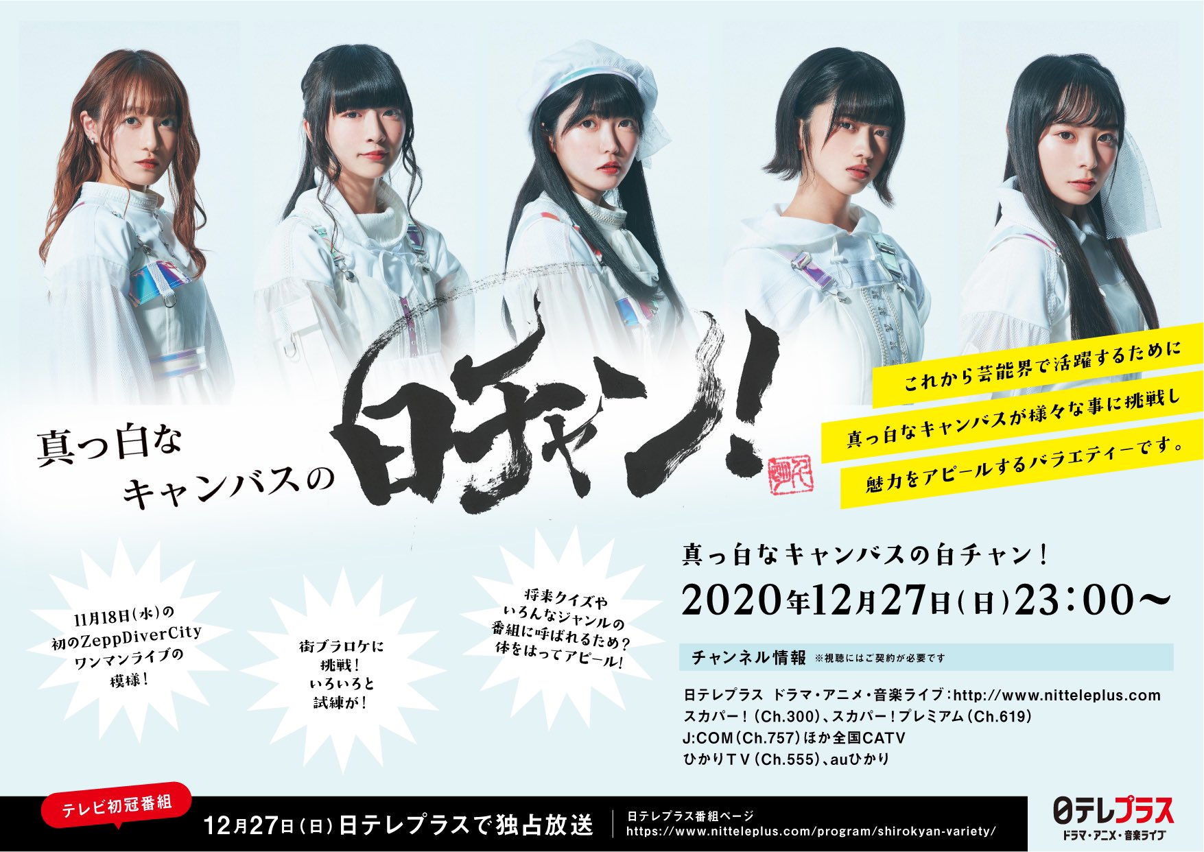 2020년 12월 27일 CS日テレプラス 닛테레플러스 채널에서 첫 레귤러 방송 真っ白なキャンバスの白チャン! 맛시로나캰바스노시로챤! 방영