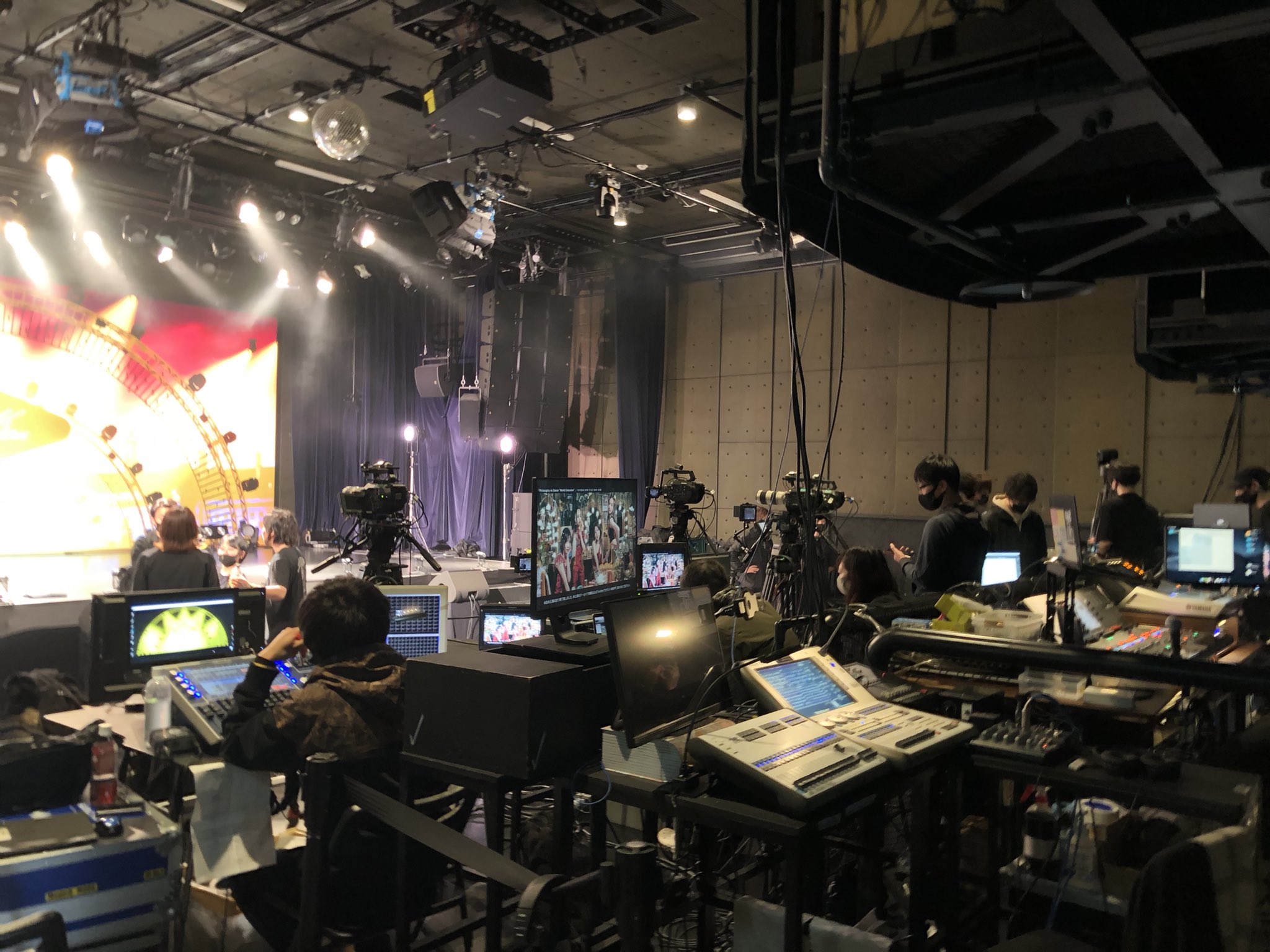 영상 송출 담당자가 무대 가까이에 배치되어 있다.