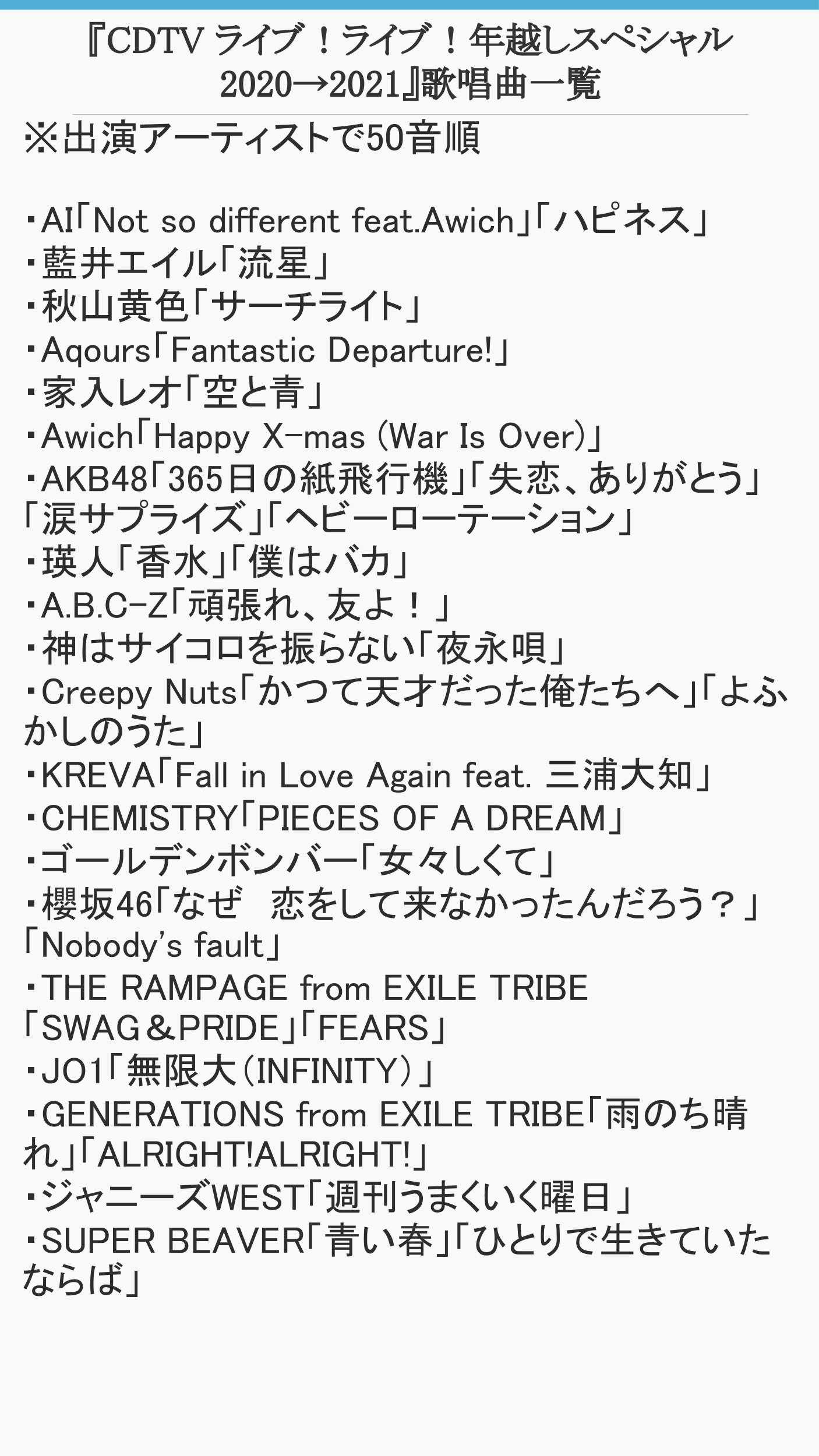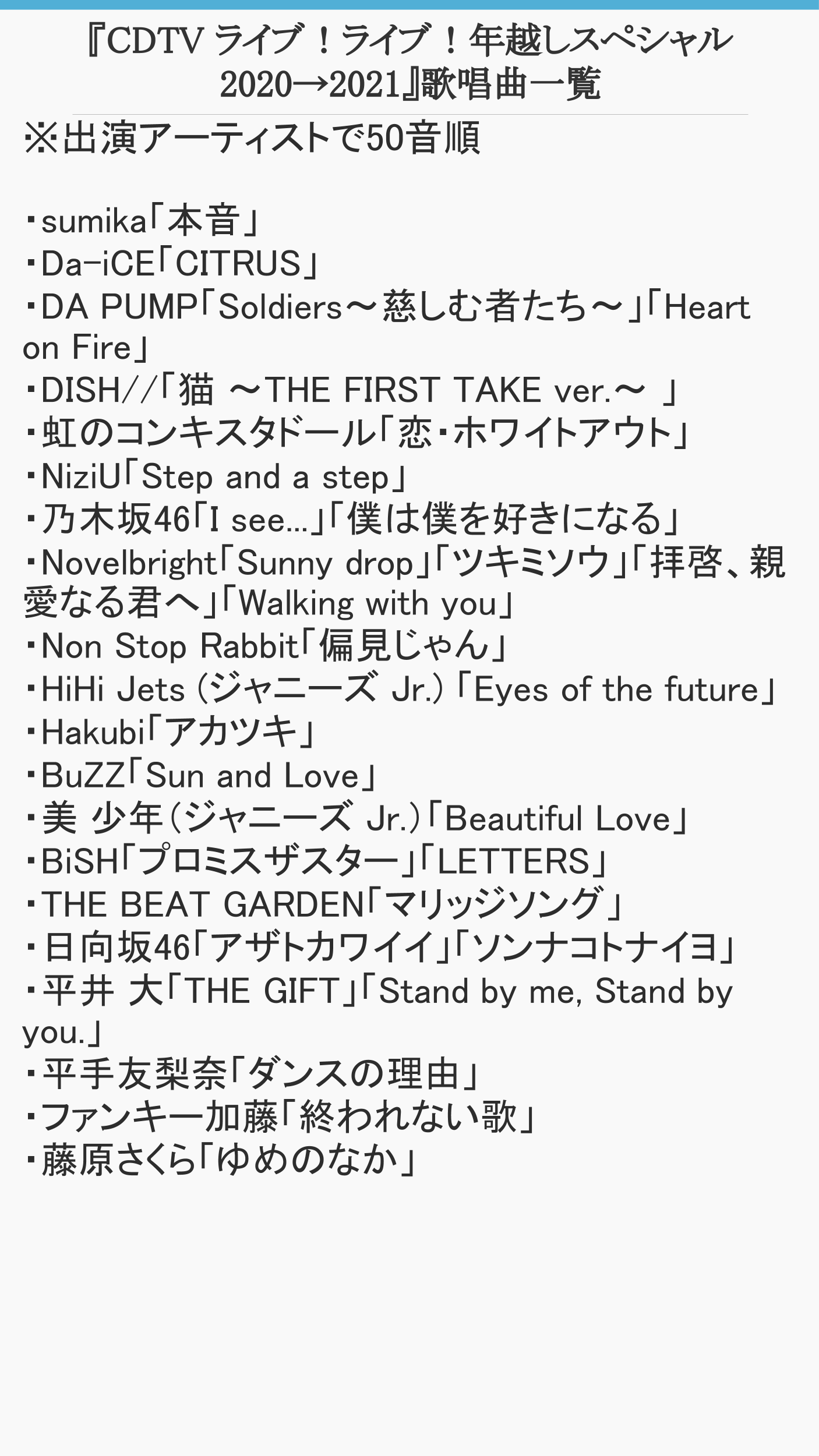 CDTV ライブ!ライブ!年越しスペシャル 2020→2021 CDTV 라이브! 라이브! 섣달 그믐 스페셜 2020 → 2021 출연예정인 虹のコンキスタドール 니지콘