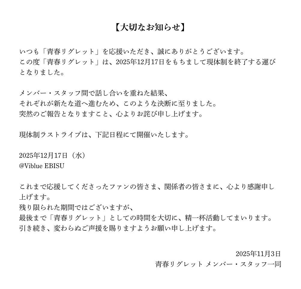 | 青春リグレット 세이슌 리그렛토 현체제 종료 공지 (0) | 2025.11.03 |
