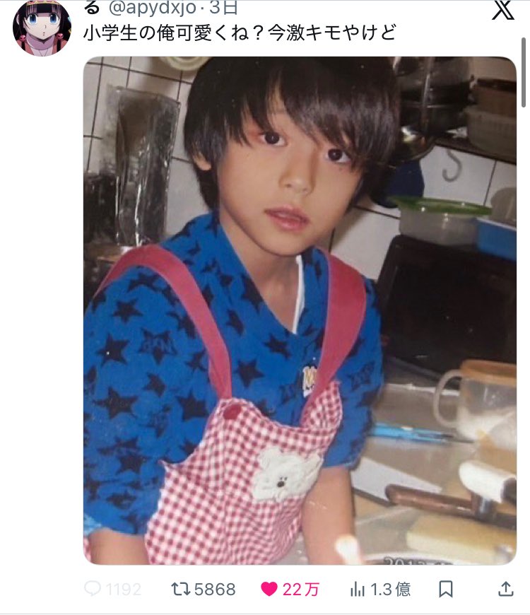 소학교 시절 나 귀엽지 않아? 라는 말로 어린시절 자신의 사진을 공개한 인물